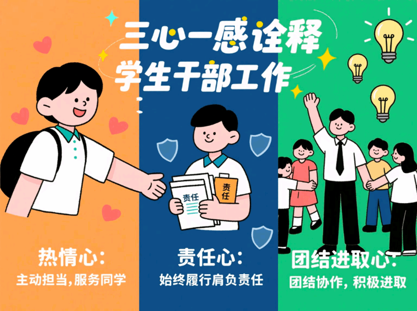 面对“如何诠释好学生干部工作”这一命题,单升军给出了“三心一感”的回答:一是要永葆热情心,学生干部应以坚定的信心和决心为基石,主动担当,不推诿责任,全身心服务同学。二是要坚守责任心,学生干部的工作仅凭热情难以持久,干部必须始终如一地履行肩负的责任。三是要增强团结进取心,同学们深知团结就是力量,学生干部更要发挥带头作用,在团结协作的基础上带领大家勇于创新、积极进取。“三心”的汇聚,最终熔铸成强烈的集体荣誉感(“一感”),成为推动集体前进的强大动力。