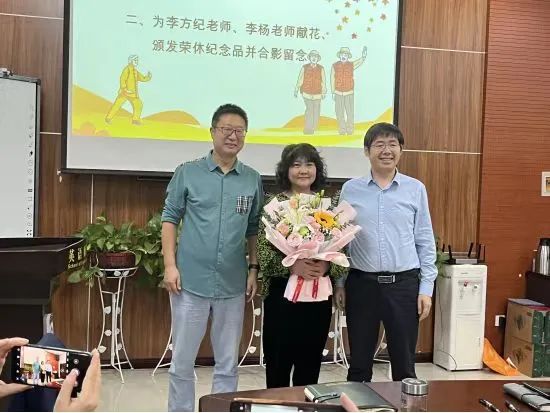 对荣休教职工送上真挚的祝福,并表达了崇高的敬意。他们表示,全院师生要切实关心关爱荣休教师,希望广大青年教师以荣休前辈为榜样,心怀“国之大者”,努力成为塑造学生品格、品行、品味的“大先生”,争做党和人民满意的“四有”好老师。荣休仪式在全体教职工合唱的歌曲《朋友》中圆满结束。