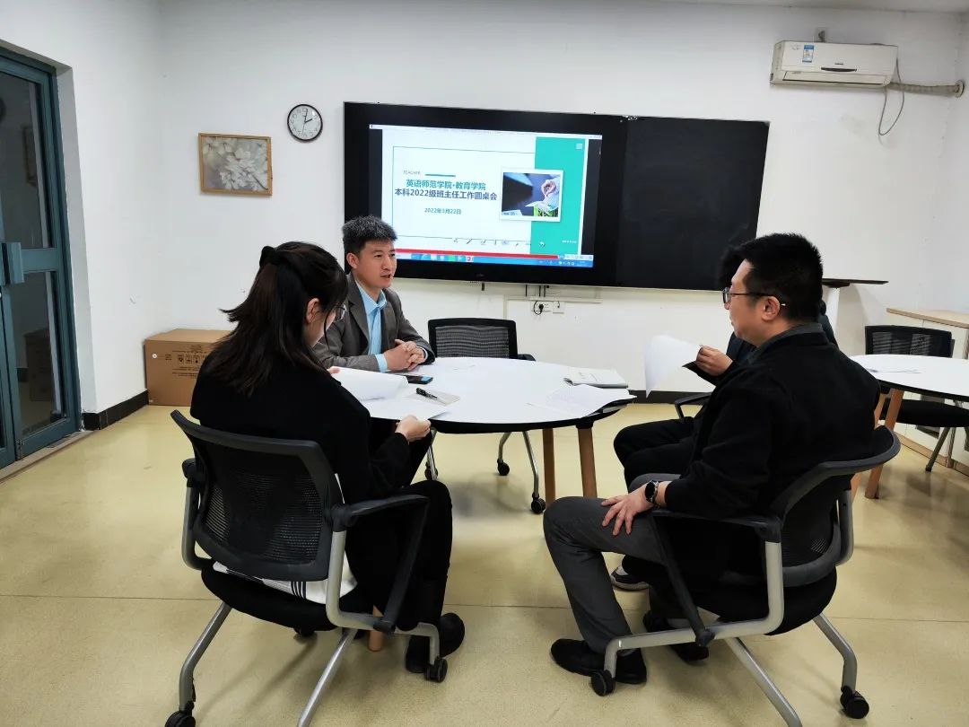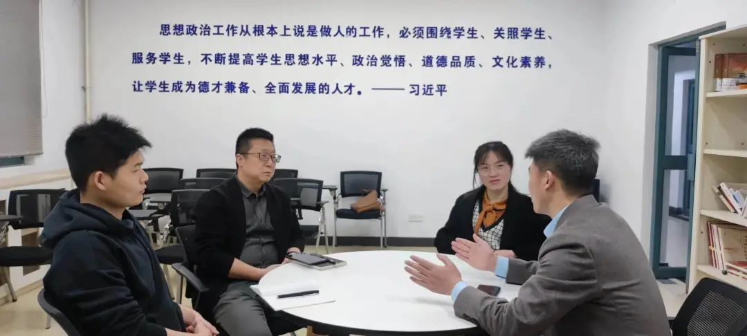 本科2022级班主任工作圆桌会议在思政进公寓-学生干部工作站顺利召开。2022级四位班主任姚玮、张维民、余智慧、赵钱森,以及辅导员李瑞静共同参加了会议。